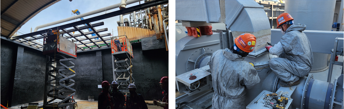산업분야 - FRP 라이닝, 환경플랜트(스크러버,덕트공사), 배관설비, 공장바닥, 약품저장탱크, 철거 및 재설치 방수분야 - 옥상방수, 수영장방수, 소화탱크, 저장탱크 등 전분야